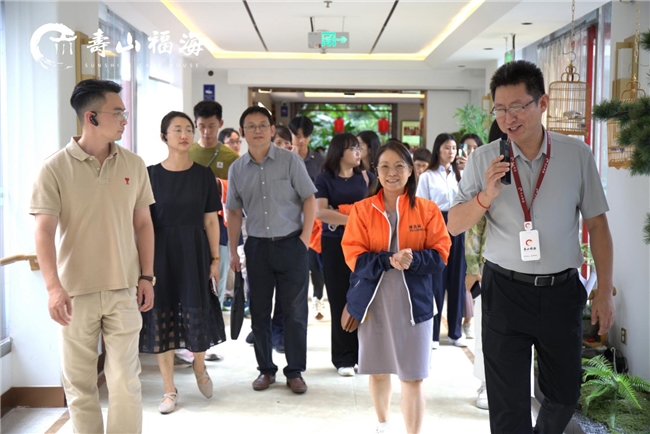 考察中,来宾们在李海峰院长的带领下实地走访了寿山福海石景山院,细致参观了机构内适老化设施、新中式特色服务场景及功能区域,从配备智能养老设备的居住空间,到兼顾康复与社交的活动场地,再到贴合长者需求的膳食服务专区、医养服务专区,嘉宾们不时驻足询问适老化设计的考量、日常服务流程等问题,对石景山院在环境营造与服务落地中的科学化、精细化、人性化的设计给予高度认可。